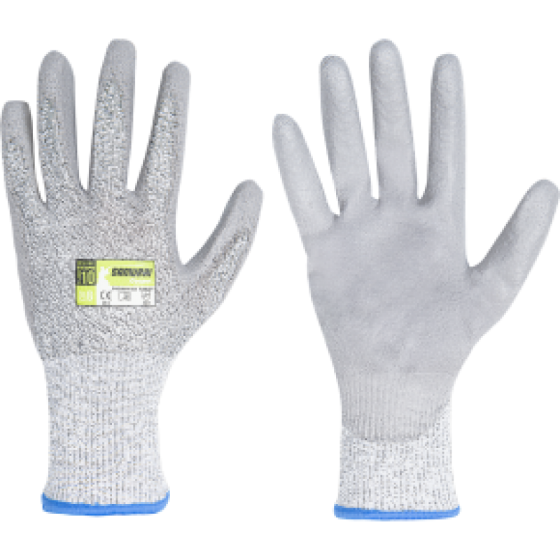 Darbinės pirštinės, aplietos puliuretanu, apsaugo nuo prapjovimų (B lygis). Ypač tvirtos mechaniškai, atsparios trinčiai ir plyšimui. Specialios sudėties dėka pirštinės pasižymi itin geromis mechaninio atsparumo savybėmis, todėl tarnauja ženkliai ilgiau nei įprastos poliuretanu ar nitrilu aplietos pirštinės.Medžiaga: įvairių audinių pluoštas aplietas poliuretanu