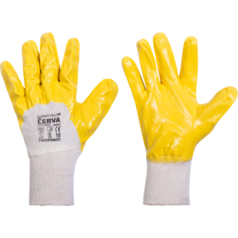 Darbo pirštinės HARRIER YELLOW aplietos plonu nitrilo sluoksniu, gerai apsaugo nuo mechaninio poveikio, purvo, tepalų ir riebalų.