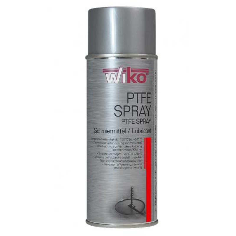 WIKO PTFE Spray is a colourless lubricant and release agent, for metal, rubber, plastics and other materials. Moreover, WIKO PTFE Spray has a very low friction coefficient (0,02 - 0,09). The spray is resistant to caustic chemicals, oils and water. WIKO PTFE Spray has almost universal application possibilities but is especially suited for areas that cannot apply mineral oils or MoS2 due to staining, e.g. electrical engineering, electro mechanics, plastics processing, paper conversion, paper industry and textile industry.